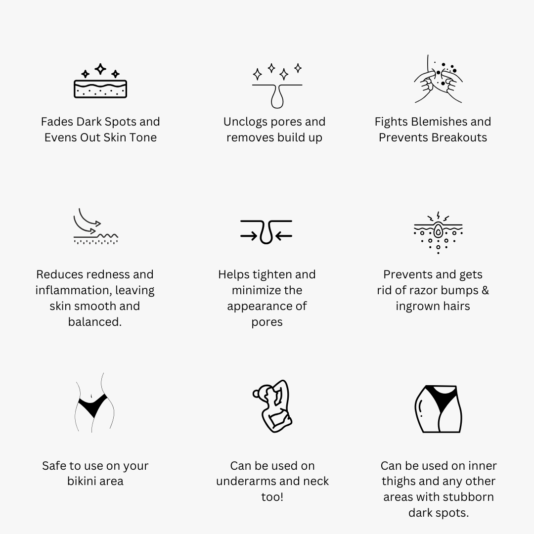 FOR ACNE, DARK SPOTS, RAZOR BUMPS, INGROWN HAIRS & HYPERPIGMENTATION